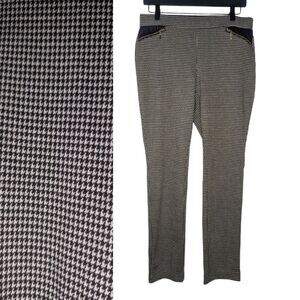 Women's Rafaella Comfort Houndstooth Black & White Stretch Pants, Size 10 Petite. Zipper faux pockets on the front. Pull up stretch skinny pants. Extremely stretchy material. Excellent condition, no flaws or wear.