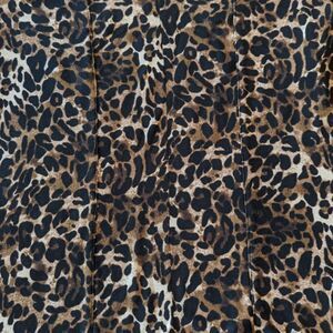 Rafaella Studio Leopard Print 3/4 Sleeve Slim Fit Blouse, Size Medium. Three quarter sleeves with a partial collar. Slim fitted with small slits at the bottom on either side for more hip space. Very cute pinup style! Heavier material, thick. Excellent condition, no flaws or wear.