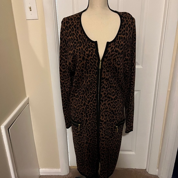 Women's Rafaella Zip Front Cardigan, Leopard print size 1X
