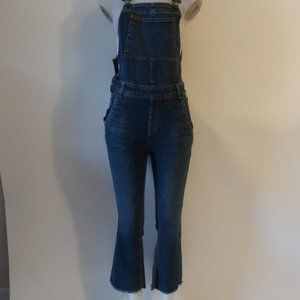 Womens Rag & Bone Paz Dark Blue Raw Hem Cropped Flared-Leg Jean Overalls SP *