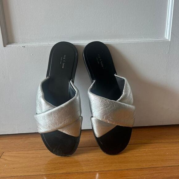Womens Rag & Bone Keaton Silver Puffy Criss Cross Sandal Slides US 8