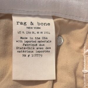 Women’s Rag & Bone White Denim Mid Rise Full Lengt Skinny Jeans
