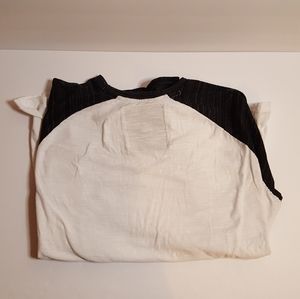 Womens XL raglan long sleeved t-shirt. White with black sleeves and black front pocket. No visible signs of wear. Shirt is 80% cotton and 20% polyester.