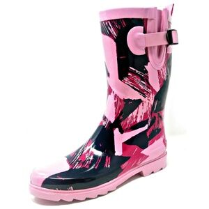 Women's Rainboots, Mid Calf Rubber Rain Boots, RB-3152, Pink, Size 10