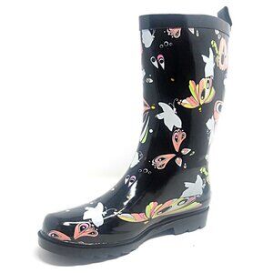 Women's Rainboots, Rubber Mid Calf Rain Boots, RB-3170 Butterfly