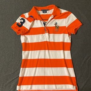 Women’s Ralph Lauren short sleeve shirt with Big pony, Large 3 on back and right sleeve