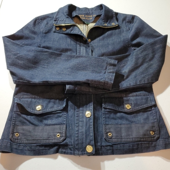 Womens Ralph Lauren Dark Blue Denim Jacket with Gold Details Med