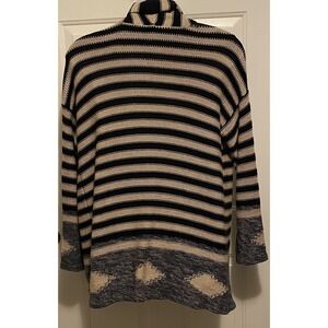 Womens Ralph Lauren Jeans Sweater Cardigan Black Brown Striped Large Linen Blend