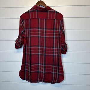 Women's Ralph Lauren Medium Tunic Button Up Top Red Plaid Viscose Flannel Shirt