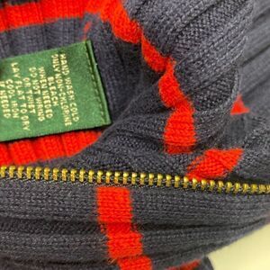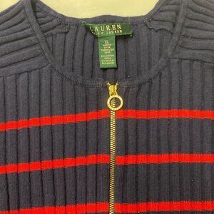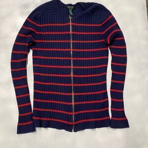 Womens Ralph Lauren Green tag Full Zip Sweater XL Ribbed Stretch Navy Blue Red