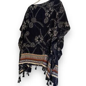 Women's Rampage Navy Blue Fringe Geometric Fluid Carefree Boho Shawl Size OS