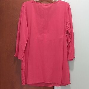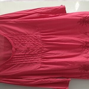 100 % Cotton Made in India Bright and eegant raspberry tunic with delicate embroidery, perfect for hot summer day and any occasion.