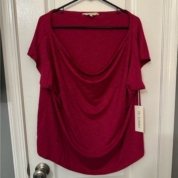 Elegant raspberry blouse by Ann Taylor with a stylish drape. Ideal for any occasion.