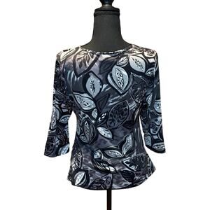 Women's Rayna Z V-Neck, 3/4 Sleeve Stretchy Floral Top, Size Med., EUC