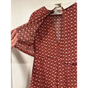 Women’s Rayon Geometric Preppy Romper Orange Black White Small