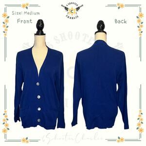 Women's Real Clothes Saks Fifth Avenue Slouchy Cardigan Sweater Blue Size Medium