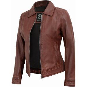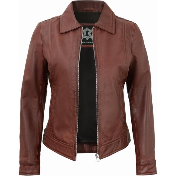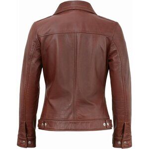 Size And Fit Guide: Our leather jacket for women offers a regular fit. If you're between sizes or plan to layer, consider choosing one size up. Refer to our size guide for precise measurements.