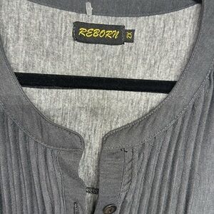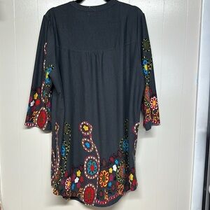 Women's Reborn Floral Print Pintuck Tunic Dress 2X Black 3/4 Sleeve Button Front. Slimming. Short. Great with a pair of leggings . See all photos as they are part of description