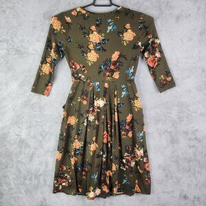 Women's Reborn J Green & Multicolor Floral Midi Dress 3/4 Sleeve Size M