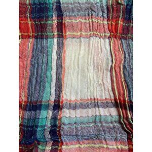 This scarf offers a lightweight, sheer design with a colorful plaid pattern. Its crinkle texture adds visual interest, while the rectangular shape provides versatile styling options.