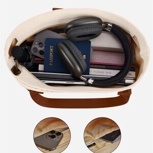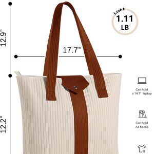 Features: Spacious tote with a smooth top zipper closure to keep your belongings secure. Inside, there are slip and zipper pockets for your phone, wallet, or small valuables. Made from 100% recycled plastic bottles, giving it a unique texture compared to standard canvas bags. Roomy main compartment fits your laptop, makeup, diapers, extra clothes, and more. Stylish, versatile, and perfect for work, weekend getaways, or as a diaper bag for moms.