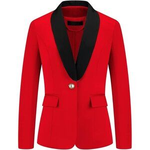 🆕Women's Red 2 Piece Business Suit Set One Button Solid Blazer Trouser Suit