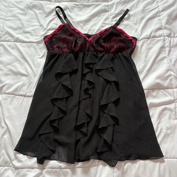 This women's red and black nightie lingerie babydoll is perfect for those who want to add a touch of grunge, vampire, or 90s style to their wardrobe.