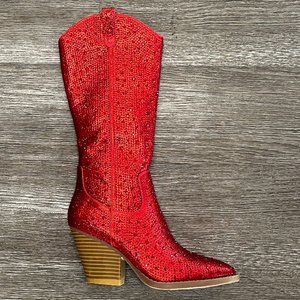 Women's Red Blingy Rhinestone Western Knee High Cowboy Boots