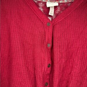 This stylish top from Knox Rose features a vibrant red hue and a ribbed texture, offering a chic and modern look. The button-down design is complemented by a tie-front detail, adding a touch of flair to its relaxed fit. Perfect for versatile styling, this top is a must-have addition to your wardrobe.