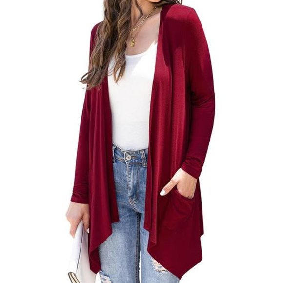 Womens Red Cardigan With Pockets Large Lightweight Sweater Fall Fashion Trends