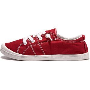 Women's Red Classic Canvas Fashion Comfort Slip On Walking Sneakers Shoes