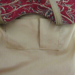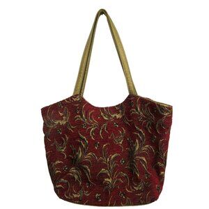 Womens Red Corduroy Tote Shoulder Bag Floral Gold Piping & Handles Flat Bottom