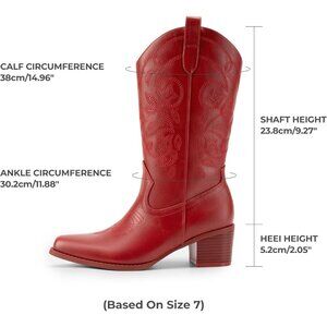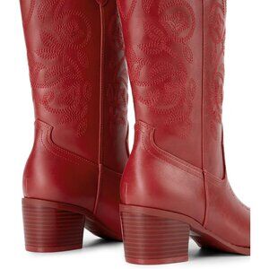 ⚡Women's Red Cowgirl Western Boots Fashion Embroidery Stitched Chunky Heel