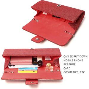 Detachable Chain:Flap with magnetic snap closure,easy access to stored contents, with removable gold/silver“O” shape chain strap,This clutch purses for women won't snap your long hair.aslo can be use as crossbody bag or shoulder bag when you need it.