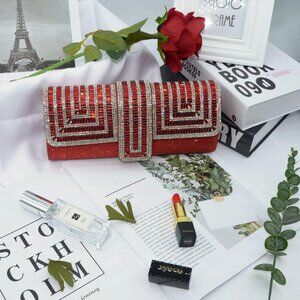 Womens Red Crystal Sparkly Evening Clutch Purse with Rhinestones Wedding