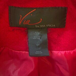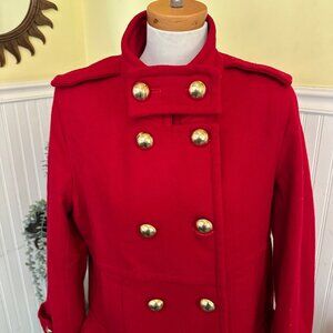 Womens Red Double-Breasted Wool Coat By Via Spiga W/ Gold Buttons Size 14