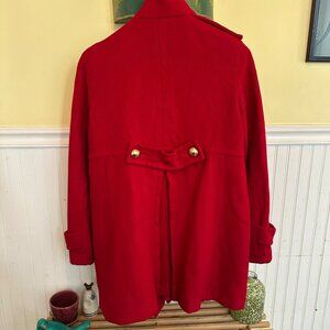 Womens Red Double-Breasted Wool Coat By Via Spiga W/ Gold Buttons Size 14