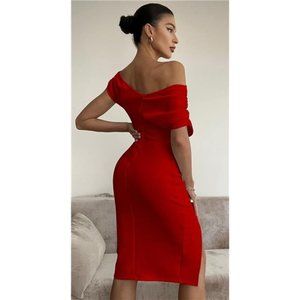 Women's Red Elegant Bodycon Midi Dress for Club Party Night Out