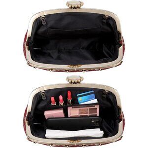 FITTING SIZE - Measuring 23.5 cm (L) * 8 cm (W) * 13.5 cm (H), it's not too big, not too small and not too heavy, just right to hold in your hand. This clutch purse can hold everything you need for a party - from your cell phone to keys, cards, perfume, lipstick and cosmetics