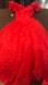 Women’s Fairy Tale Prom Party Dress with Corset back. The color is Red. The dress has multiple layers of fabric, and the sleeves sit off to the side of the shoulder. The fabric has glitter in it, so does drop some, but helps the dress really sparkle as you move around (see video).