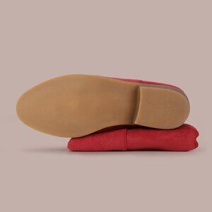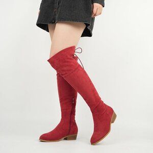 Women's Red Faux Suede Thigh High Over The Knee Black Low Flat Heel Boots