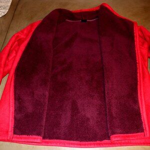 Women's Red Fleece Cardigan Jacket by Cuddl Duds Size L Cozy Soft Warm Stylish
