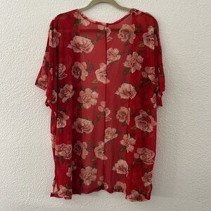 Women’s Red Floral Sheer Short Sleeve Cover Up
