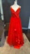 Women’s Red Full Length Satin & Tulle Prom Party Dress Zip Up Back Size 8 *READ