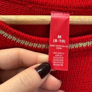 Womens Red & Gold Snowman Reindeer Christmas Tree Ugly Sweater Holiday Sz M