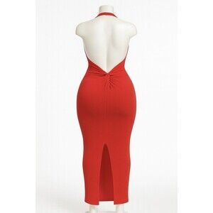 Women’s Red Halter Bodycon Maxi Dress – Sleeveless, Backless, Curve Sz xL