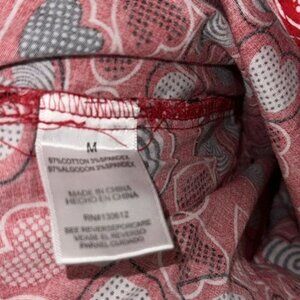 Womens Red Heart Print Scrub Top With V-Neck & Pockets By Flex Size M