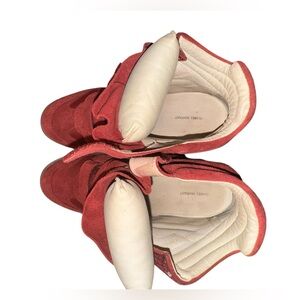 Step out in style with these vibrant red high-top sneakers. Perfect for adding a pop of color to any outfit.