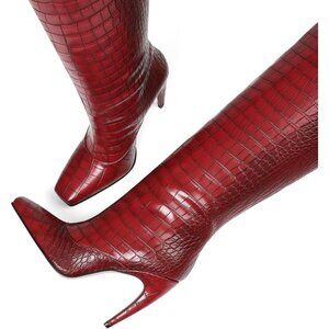 🆕Women's Red Knee High Boots Wide Calf Long Suede Square Toe Heel Tall Boots