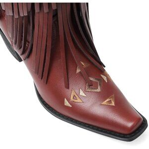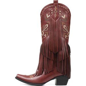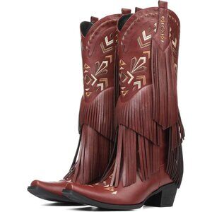 ⚡Women's Red Leather Cowgirl Boots Knee High Fringe Boots Comfortable Pull On